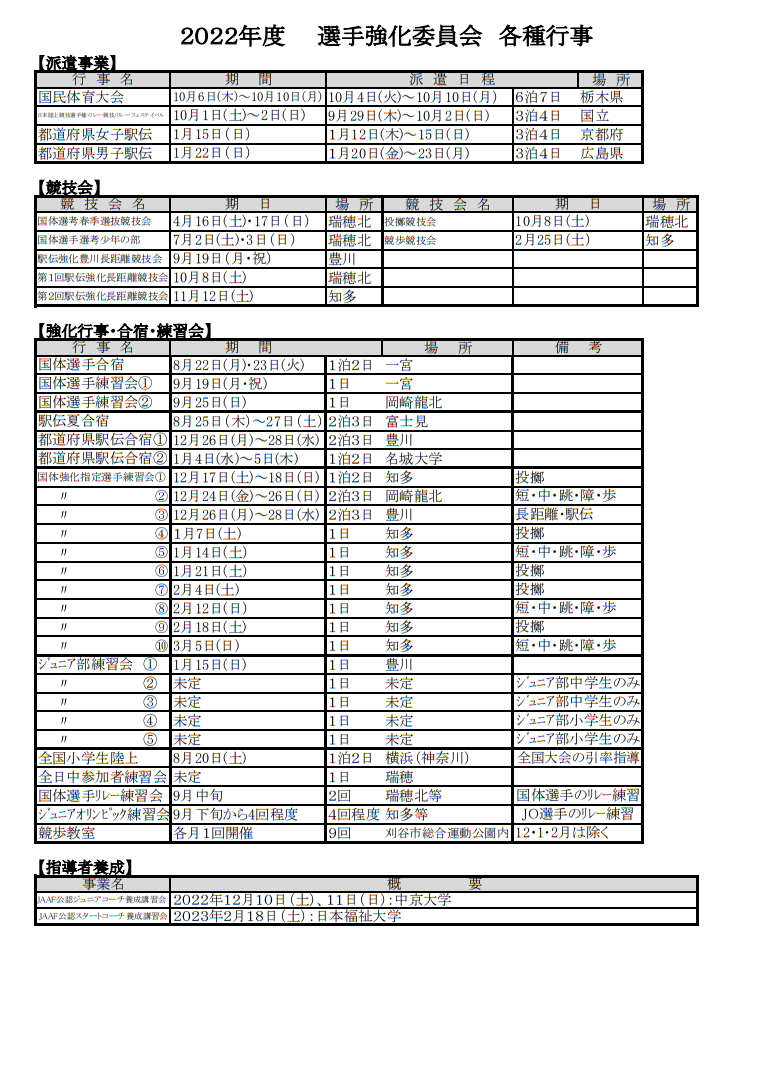 強化委員会行事予定 2022年度 R4.7.6(水)
